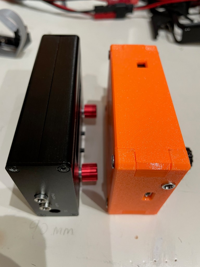 The whole case (minus the knobs, screws, and BNC adapter) measures 60.5mm by 90mm by 30mm.