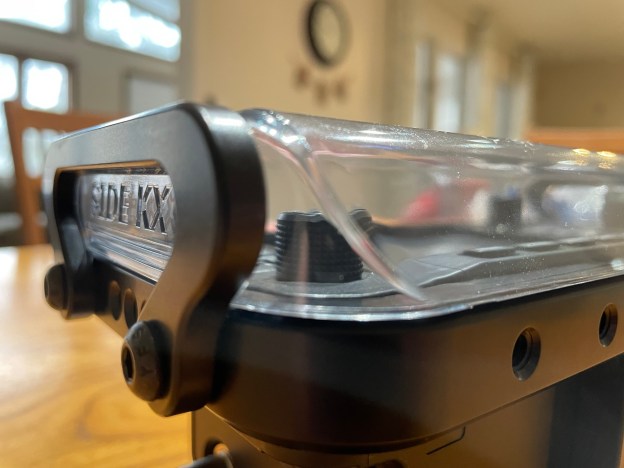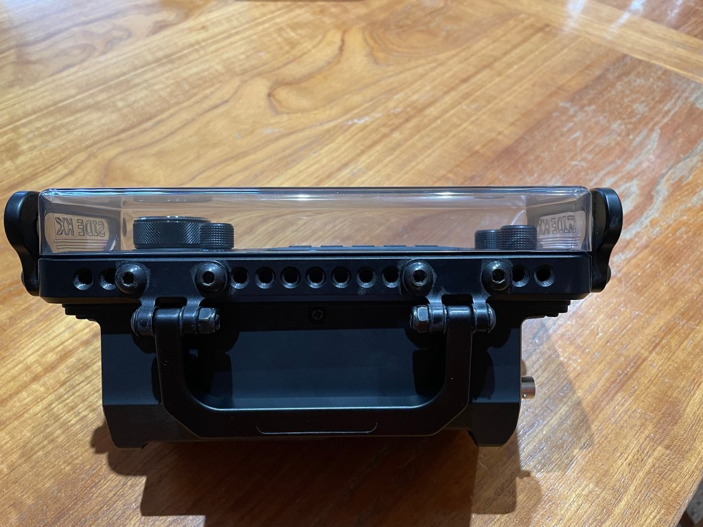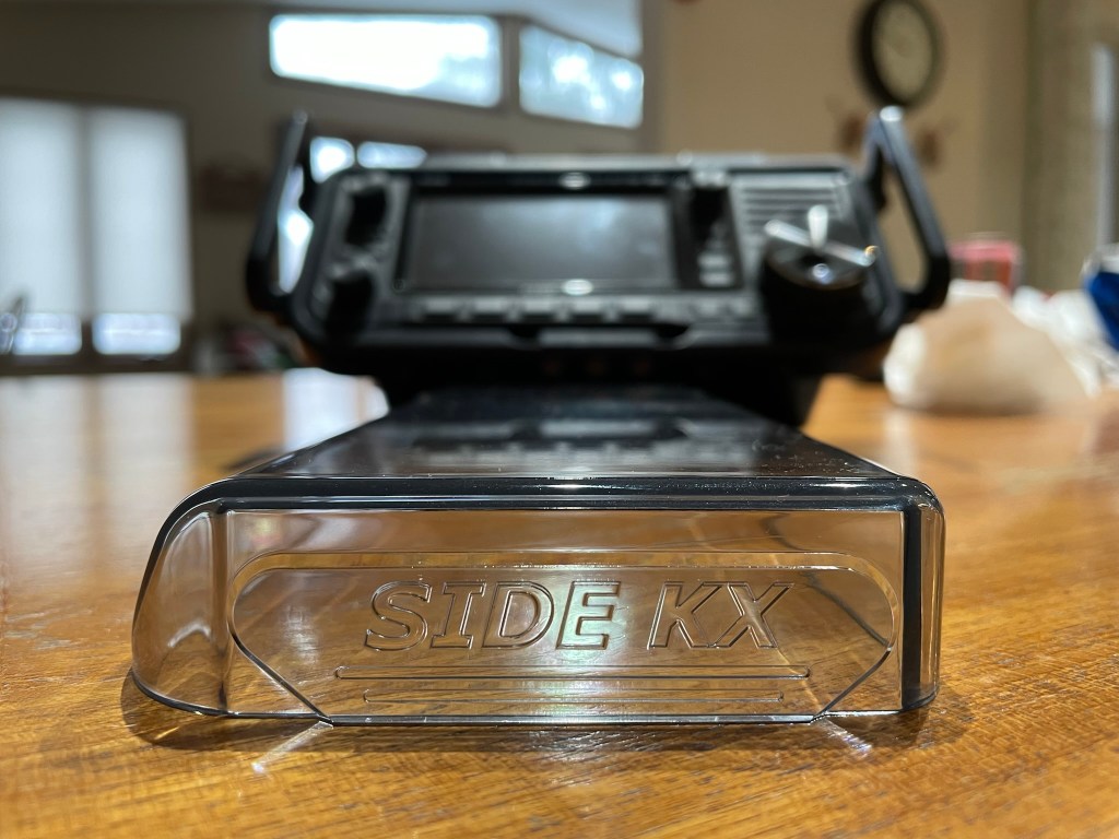 The Side KX Cover for the IC-705 is built very much like the one for the KX3. It fully encloses the face and controls of the radio along all 4 edges with about 1.4mm thick polycarbonate (as my calipers measured it – they’re cheap so it might be accurate 😉 ). The edges have raised sections that fit securely into the openings on the side panels of the Peovi Carry Cage.