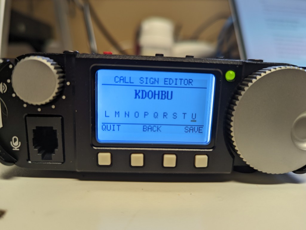 Upon powering up the radio, you are greeted with your callsign on a brightly lit interface. The onboard speaker is quite small, and results in a ringing tone when driven by too high of volume as to be expected given the size.